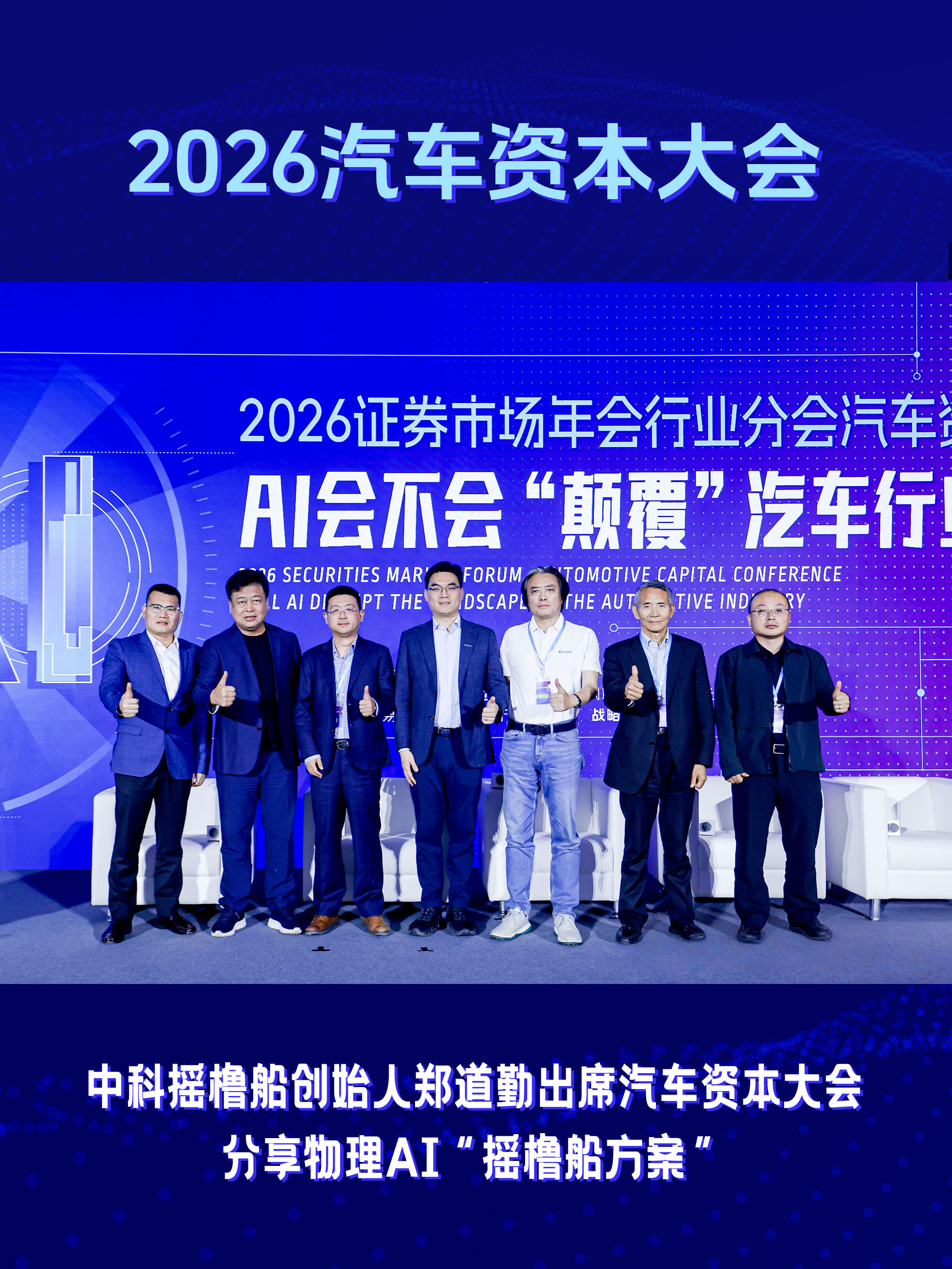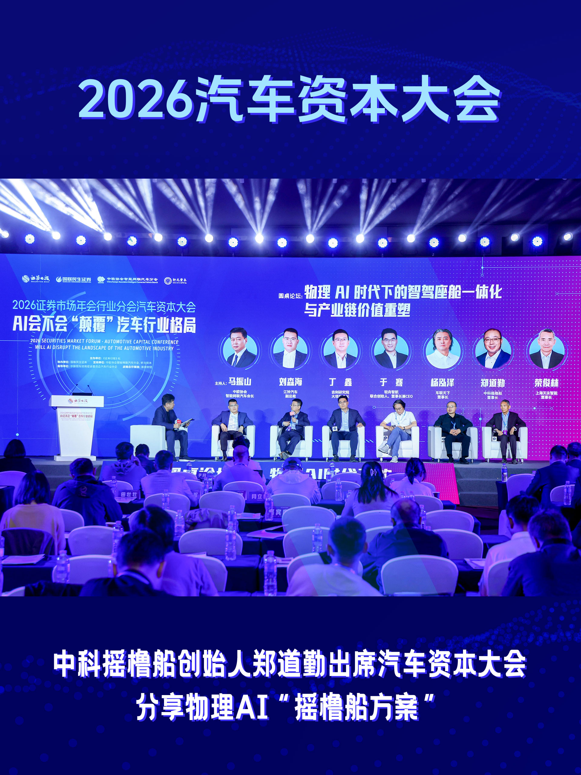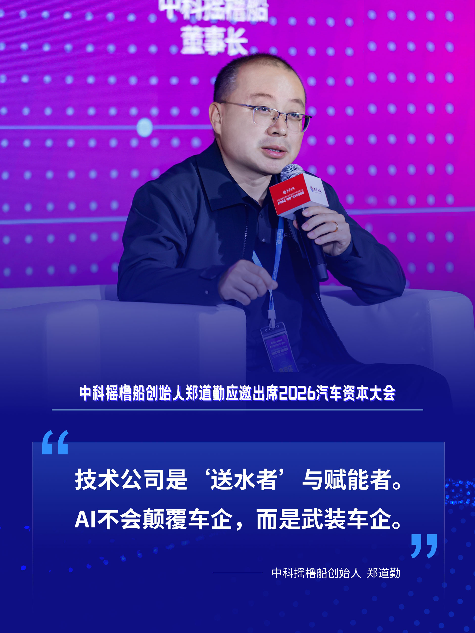 2026年4月23日,在《证券日报》主办的汽车资本大会上,中科摇橹船创始人郑道勤围绕“AI是否会颠覆汽车行业格局”这一议题,分享了公司的思考与实践。