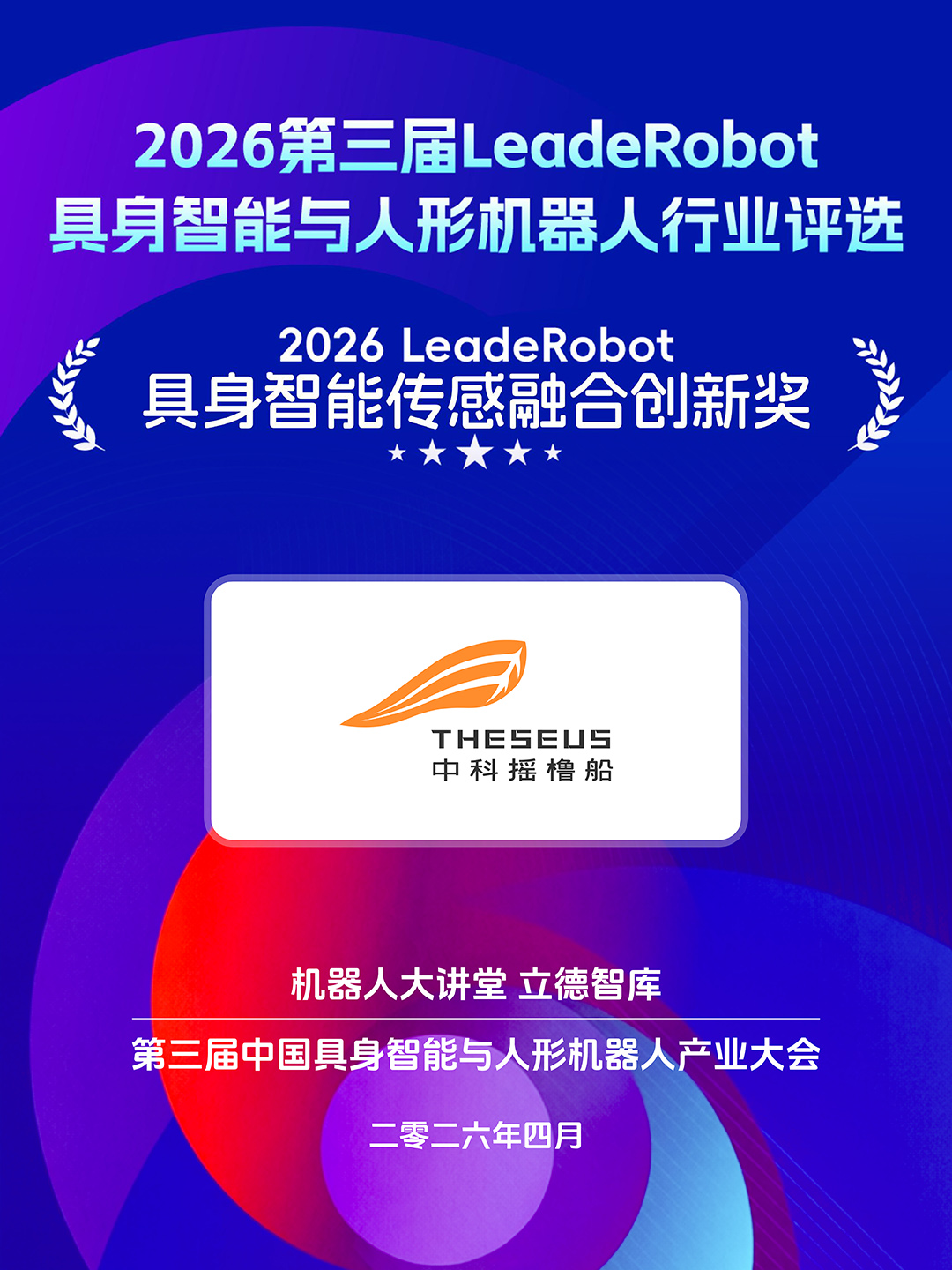 凭借「基于高时间分辨的空间计算成像技术,为各类具身智能体打造的新一代空间感知装备」,荣获 2026第三届LeadeRobot具身智能与人形机器人行业评选——中国具身智能传感融合创新奖。